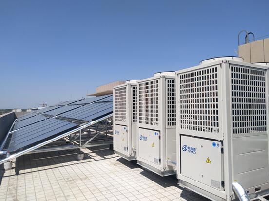 技术要求:该项目热水系统以太阳能供热水为主,共采用300块格瑞德平板集热器,集热器面积600平方,3台40KW格瑞德空气源热泵热水机做为辅助能源。