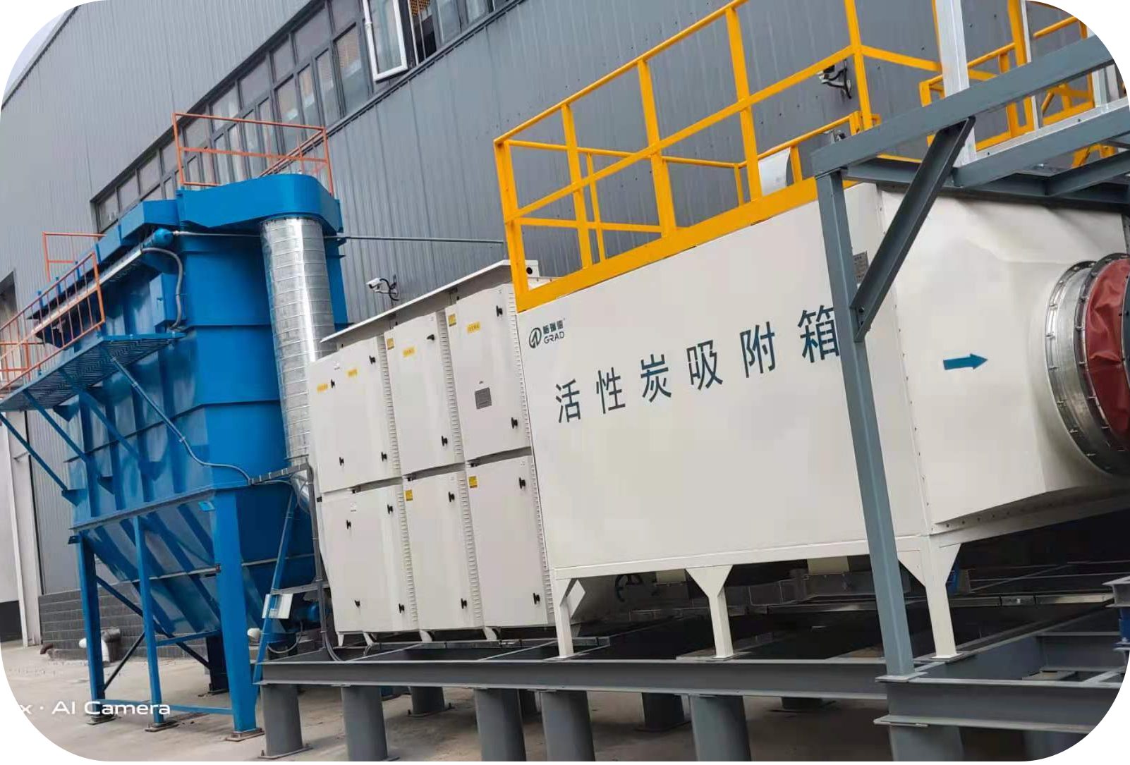 产品内容:UV光解等离子一体机、干式过滤器、活性炭净化设备、离心风机