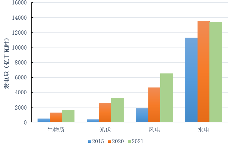 2021年,我国非化石能源占能源消费比重达到16.6%,风电、太阳能发电总装机容量达到 6.35 亿千瓦,单位GDP煤炭消耗显著降低。