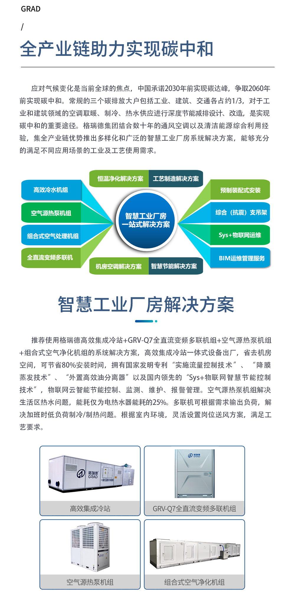 格瑞德致力于让人工环境更美好,通过打造空调工程、通风人防、复合材料、环保工程领域的全过程解决方案来满足客户需求,格瑞德构建了包括品牌规划、系统设计、技术开发、产品制造、整体施工、维护服务、检测认证、人才交流、产业集群的全生命周期产业链和产业生态。