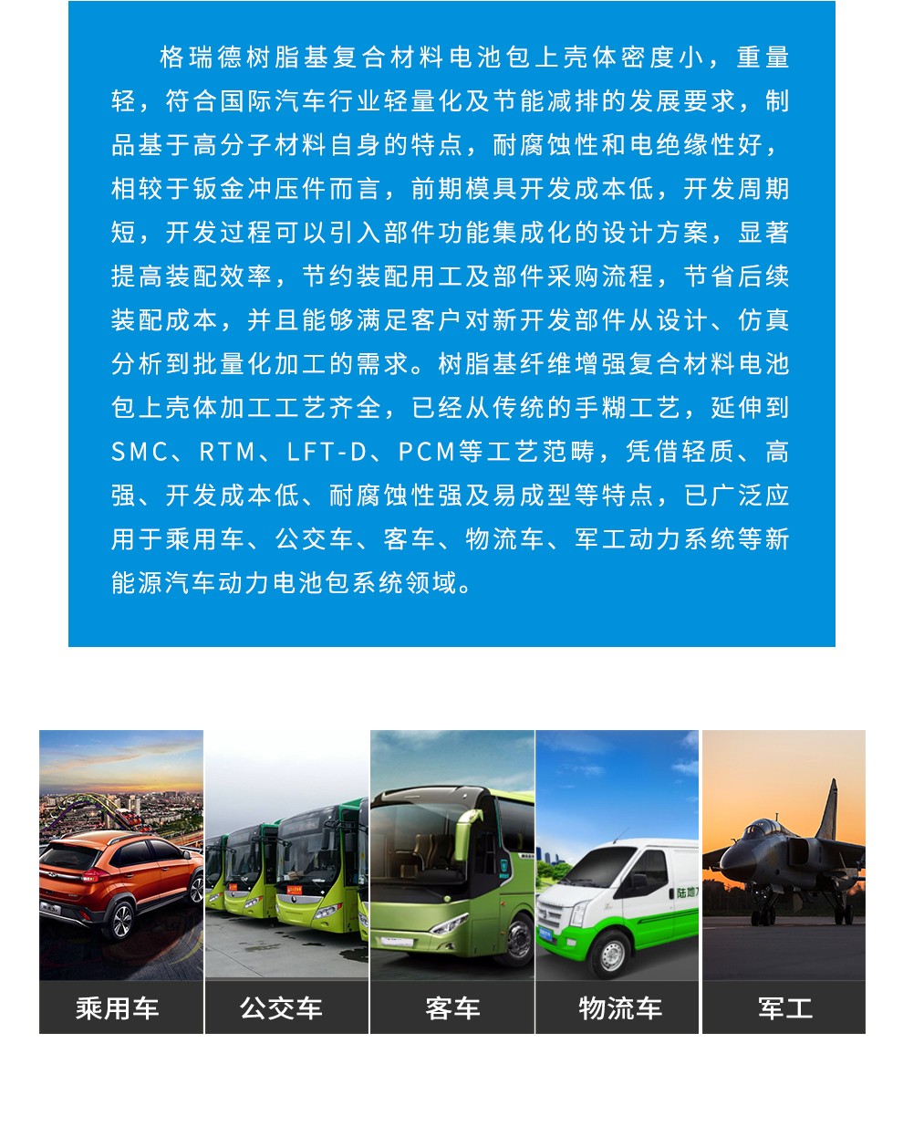 涵盖真空导入、热塑、模压、缠绕、手糊等各大工艺,广泛应用于航空航天、风力发电、新能源汽车、市政、水利、石化、体育器材等各产业。
